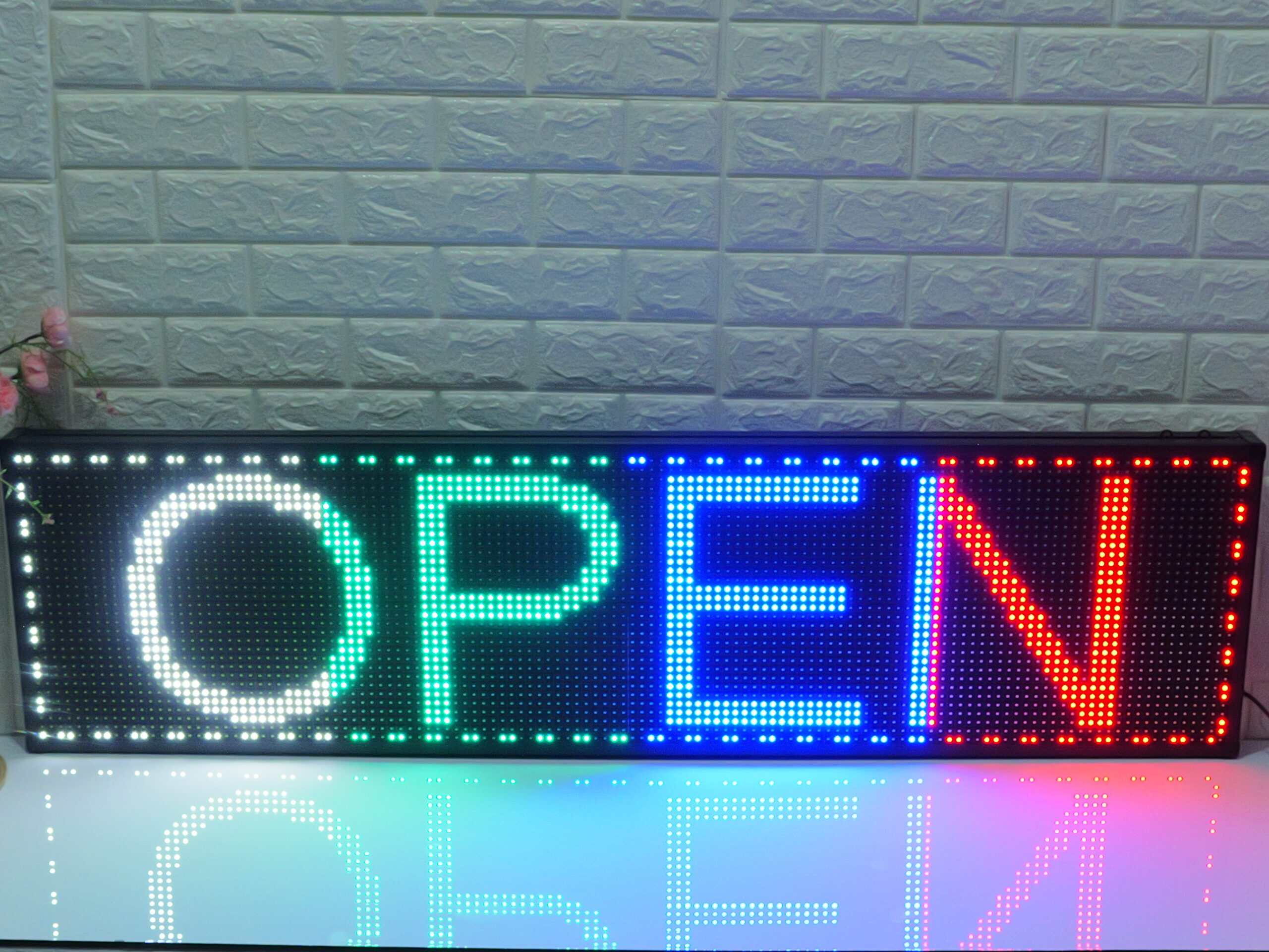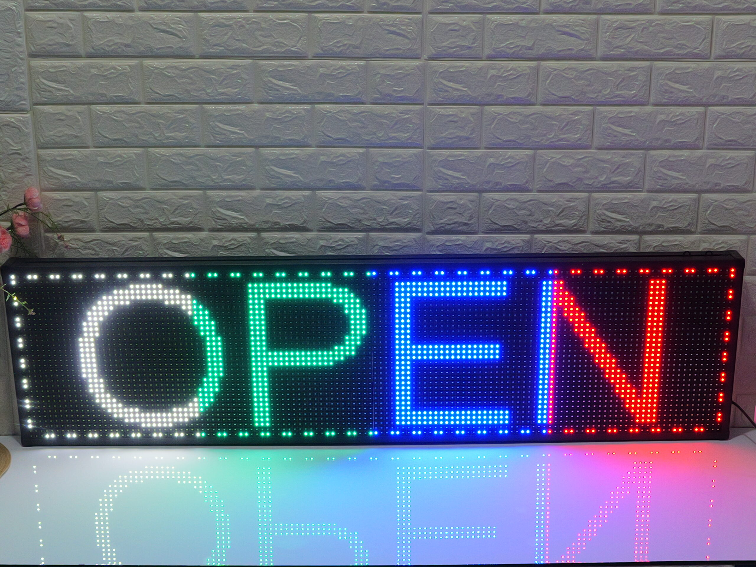 It can be hung on the doors or windows of various stores or supermarkets. It not only shows the store’s operating status but also scrolls through promotional messages or notices to customers. The text can be freely edited in the app, allowing it to help you promote information 24/7. The colorful lights attract people’s attention, and the scrolling text makes them stop and take a look.