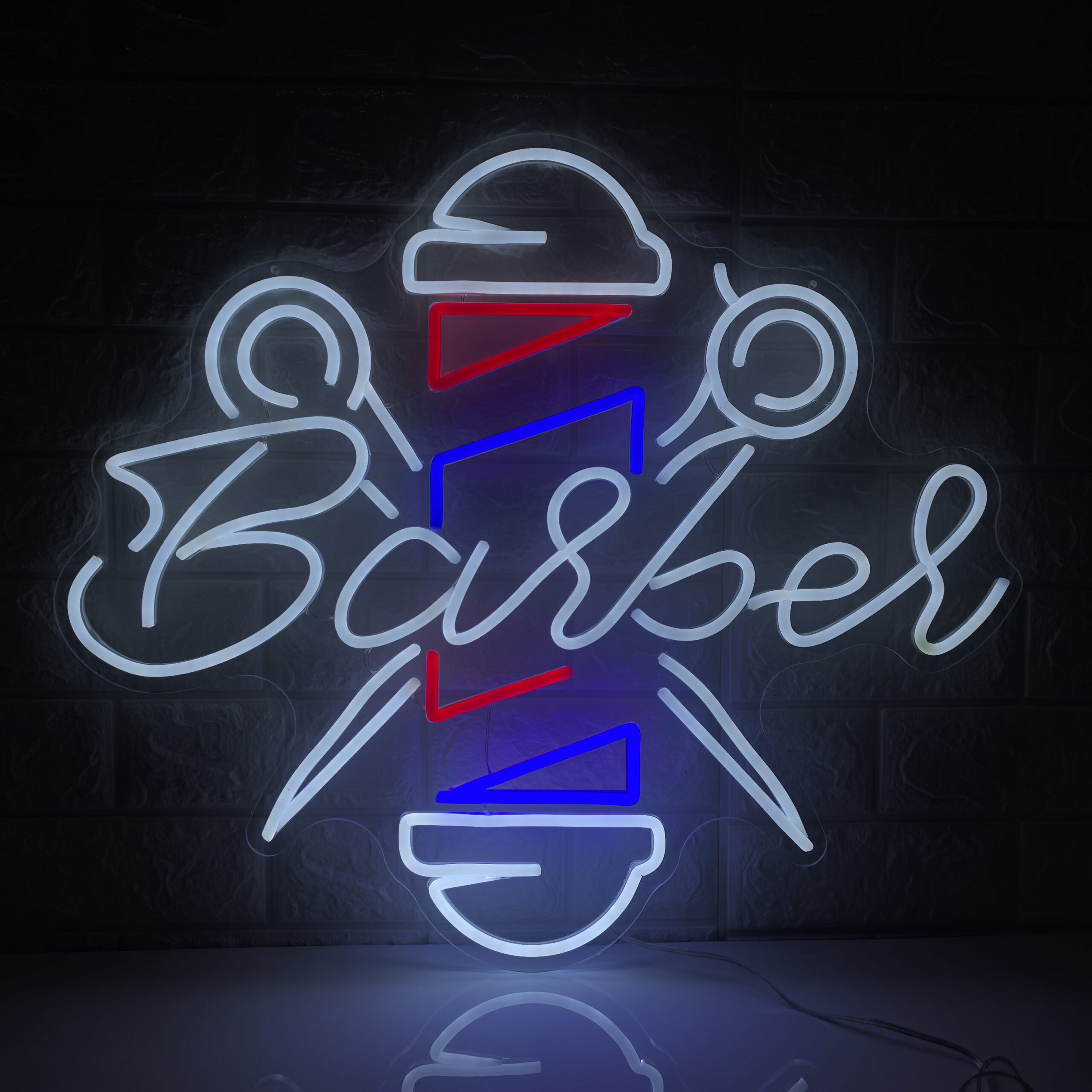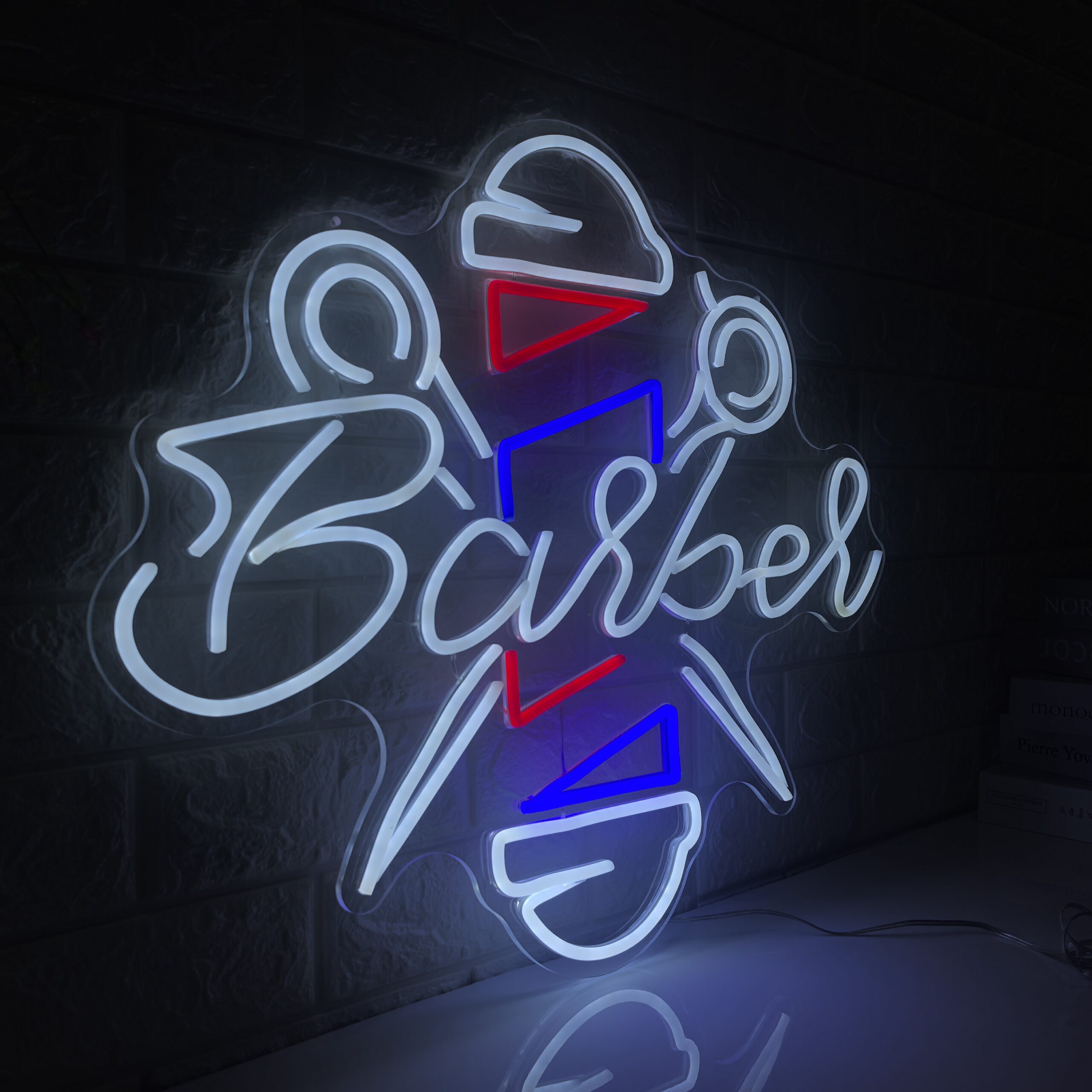 This eye-catching barber neon sign showcases iconic barber pole, scissors, and razor elements. Ideal for barbershops, it delivers retro charm, enhances storefront visibility, and creates a warm, professional vibe to attract clients day and night.